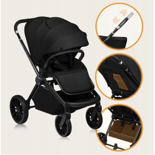 Коляска 2 в 1 Lionelo MIKA PLUS 2IN1 BLACK ONYX - комфорт и безопасность для ребенкаУ...