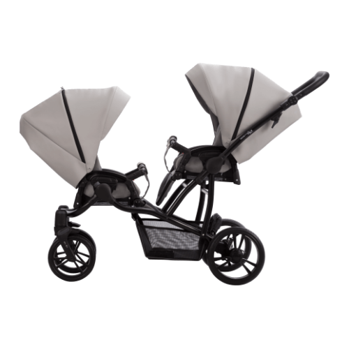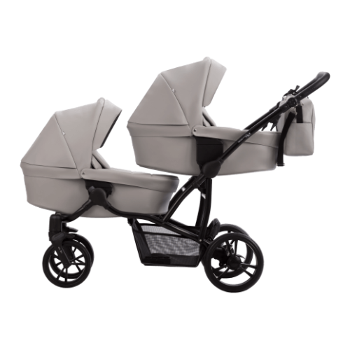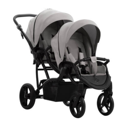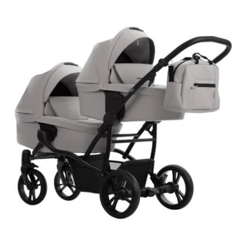 коляску для двойни 2 в 1 Bebetto B 42 Pro. Модель представлена в светло-сером цвете 21. Укомплектованная всеми модулями и аксессуарами, необходимыми для