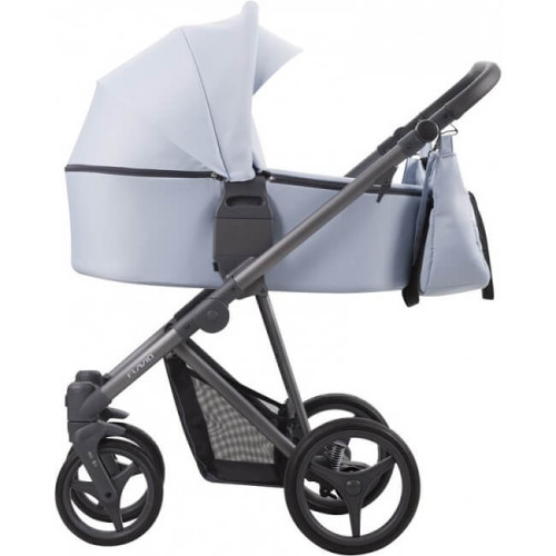 универсальную коляску 2 в 1 Bebetto Flavio 07. Модель представлена в голубом цвете. Ее особенности включают двухуровневую люльку со съемкой по