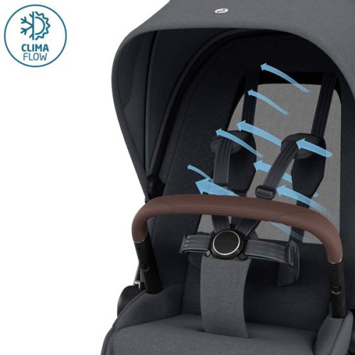 Благодаря спинке с сеткой ClimaFlow, тело ребенка дышит в любую погоду. Прогулочная коляска Maxi-Cosi Fame обеспечивает невероятно плавный ход благодаря подвеске CosiCruise, которая справляется с любыми дорожными покрытиями.