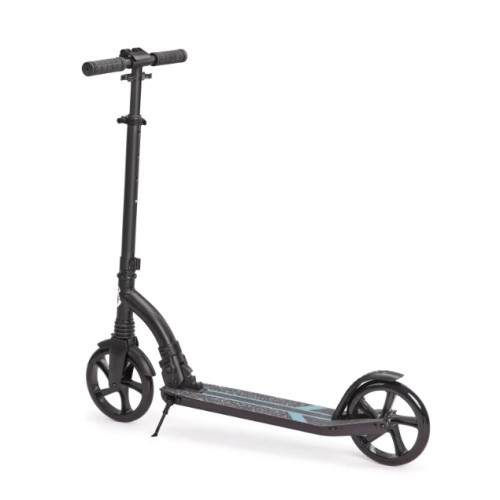 Он оснащен тормозом и нескользящей декой для безопасности управления, а также подставкой для ног, позволяющей самокату стоять самостоятельно.