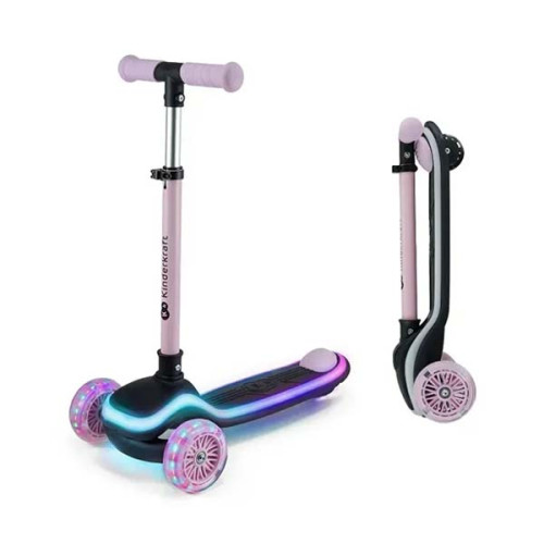 Самокат Kinderkraft Raket Pink  имеет прочные полиуретановые колеса с RGB LED, которые светятся во время движения. Высококачественные подшипники ABEC-7 обеспечивают плавную езду, а регулируемый руль "растет" вместе с ребенком. Компактность и быстрое складывание делают его удобным для хранения и транспортировки.
