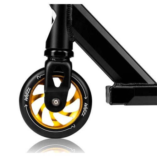 Lionelo WHIZZ BLACK CARBON YELLOW – прочный и легкий трюковый самокат, созданный для выполнения экстремальных элементов и динамичного катания.