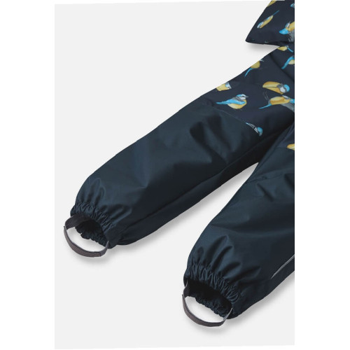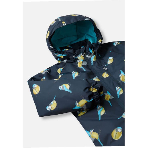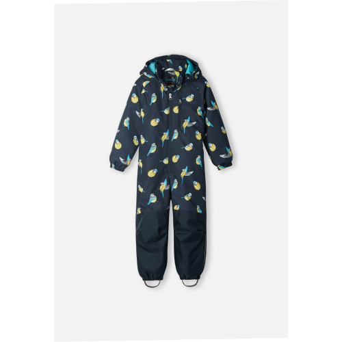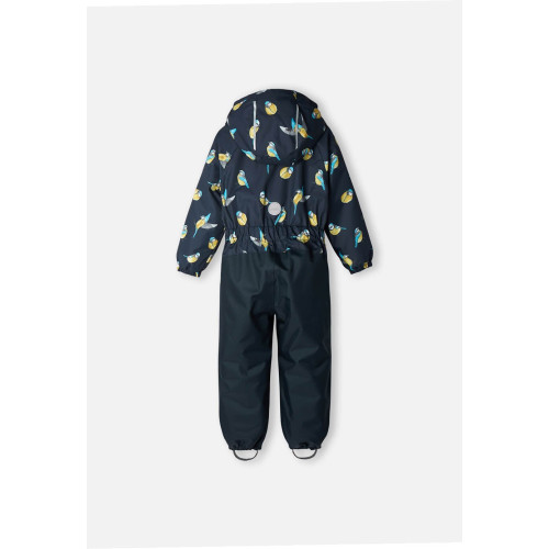 Предлагаем Вам купить цельный демисезонный комбинезон Lassie by Reima Tilta 720742R-6962 для мальчика с утеплителем. Модель представлена в темно-синем цвете верх c принтом птиц и однотонный темно-синий низ. Комбинезон застегивается на длинную косую молнию.