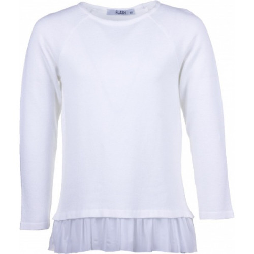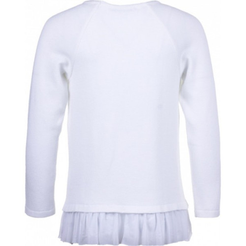 Данная модель однотонного джемпера с ажурными рюшами внизу для девочки в белом цвете.