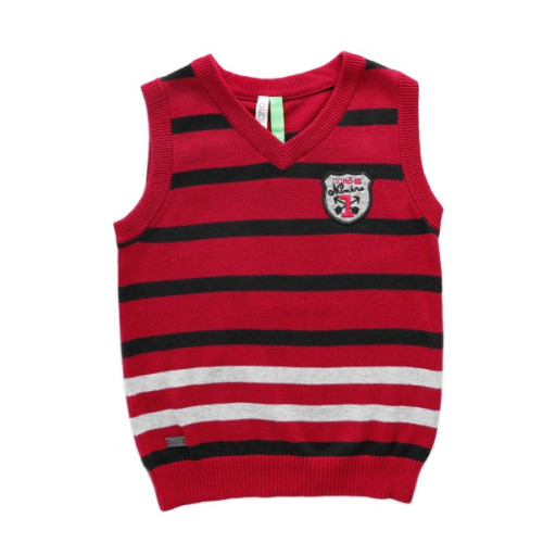 Стильная и модная жилетка Nano красного цвета в темную и светлую полоску. Впереди вышивка-логотип компании.