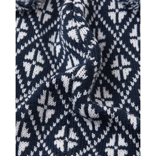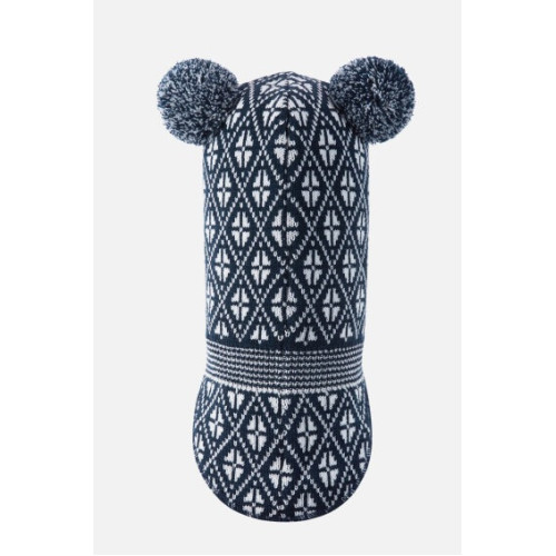 Особенности этой модели включают жаккардовую вязку, два помпона сверху и светоотражающую эмблему спереди.