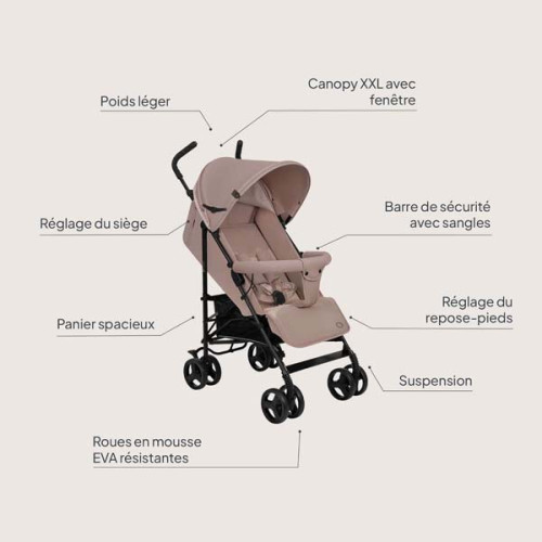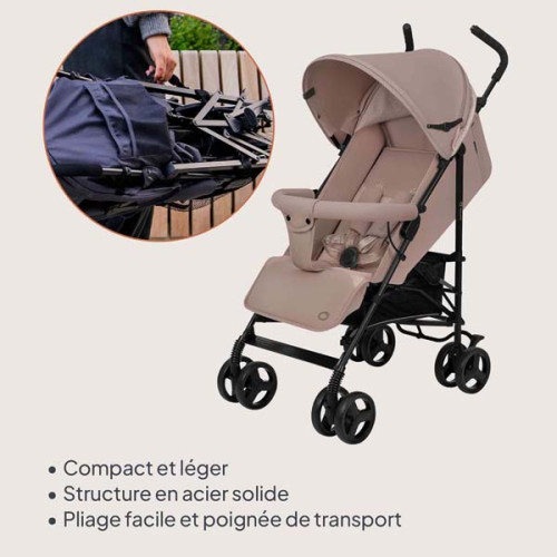 Коляска-тростина Lionelo ELIA BEIGE TAUPE поєднує в собі легкість, мобільність та комфорт для малюка. Вона є відмінним вибором для активних батьків, які шукають практичне і стильне рішення для прогулянок. Завдяки компактній конструкції та простоті в управлінні, ця коляска стане чудовим помічником у міських умовах та під час подорожей.