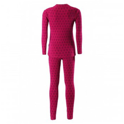 Пропонуємо Вам купити вовняний комплект термобілизни Reima Taival 536434-3601 для дітей. Красиве і яскраве забарвлення малиновий принт. Термобілизна Рейма відмінно зігріє дитину, забезпечить йому комфорт та тепло.