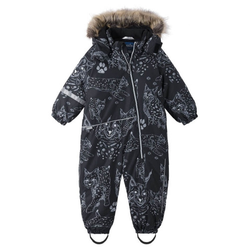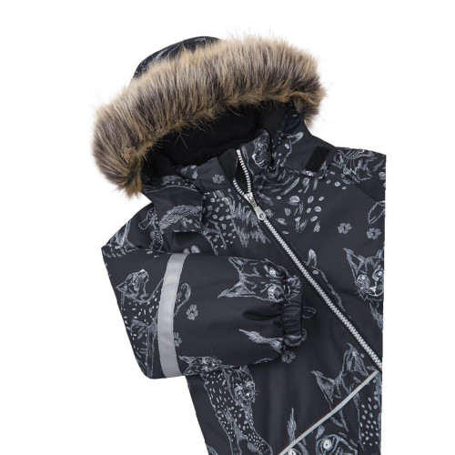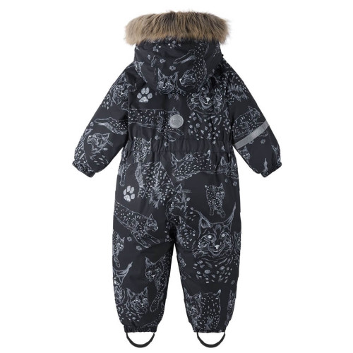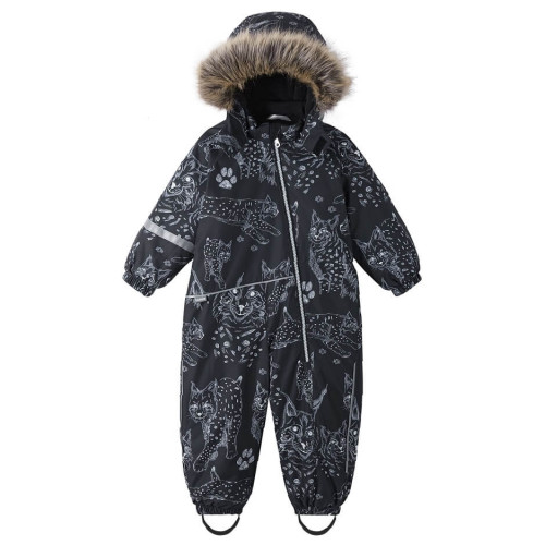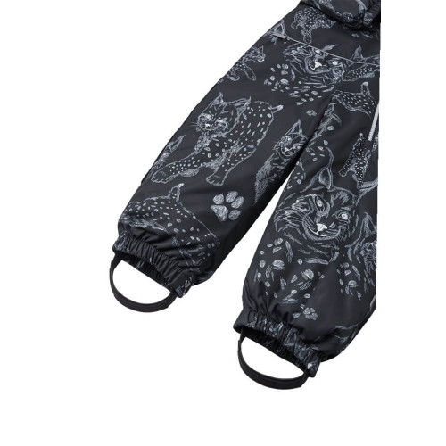 Пропонуємо Вам купити цілісний комбінезон зимовий Lassie by Reima Nyuka 7100019A-9991 для хлопчика. Модель представлена у чорному кольорі з принтом тварин.