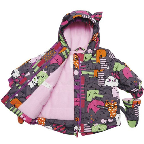 Оригинальная форма капюшона с ушками украшает куртку. Для максимального