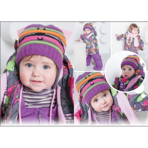 Комбинезон Deux par Deux состоит из курточки, полукомбинезона, шапочки, шарфика и манишки. В комплект также