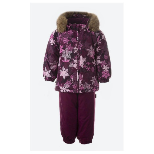 наличии модель Huppa AVERY 41780030-01534 – куртка в яркие принт снежинки и однотонный темно-бордовый полукомбинезон.