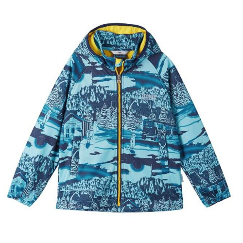 Демісезонна куртка Lassie by Reima Kataja 7100015A-6961 для хлопчика. Модель представлена в синьому кольорі з принтом.