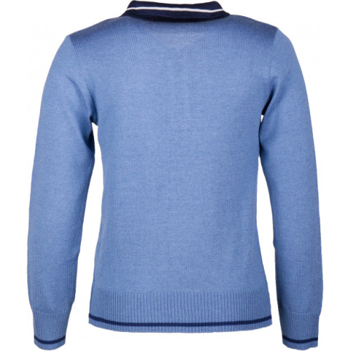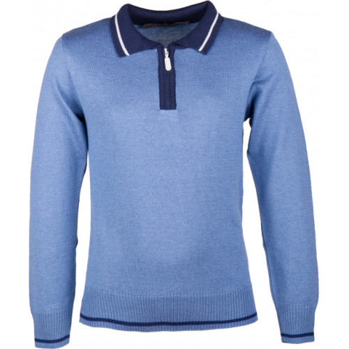Данная модель однотонного джемпера-поло в голубом цвете с синей окантовкой. Модель на застежке змейке для мальчика.