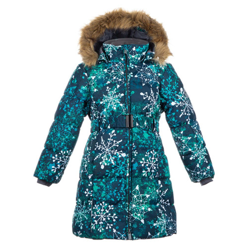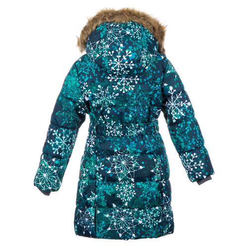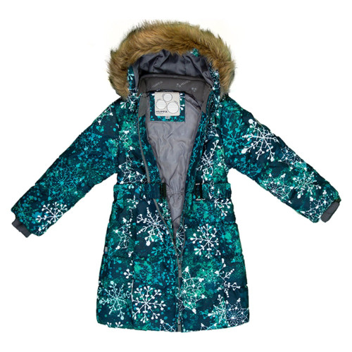 зимнее пальто для девочки известной торговой марки HUPPA (Хуппа). Модель YACARANDA 12030030-82066 представленна в изумрудно зеленом принт цвете.