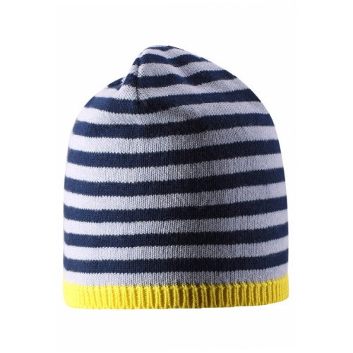 Предлагаем купити детскую демисезонную шапку Lassie by Reima 728754-2301 в темно-синею и серую полоску с желтой полоской внизу.