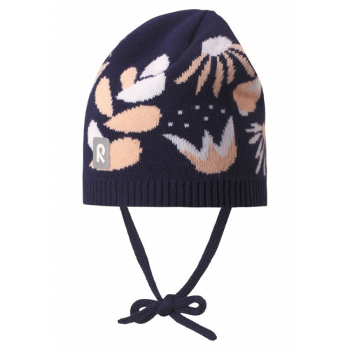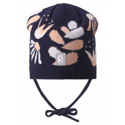 Шапка Reima Aste 518512-6981 демисезонная для девочки в темно синем принт цвете.