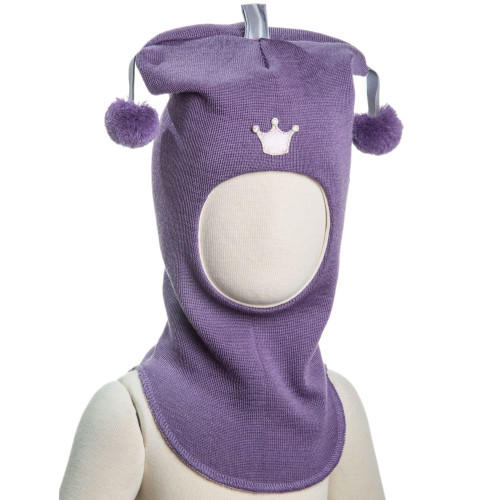 купити зимний шерстяной шлем Kivat 491-21. Универсальная однотонная модель "Ждокер корона" в сиреневом цвете с двумя помпонами на светоотражательных лентах, с короной и светоотражателем на макушке. Модель для девочек.